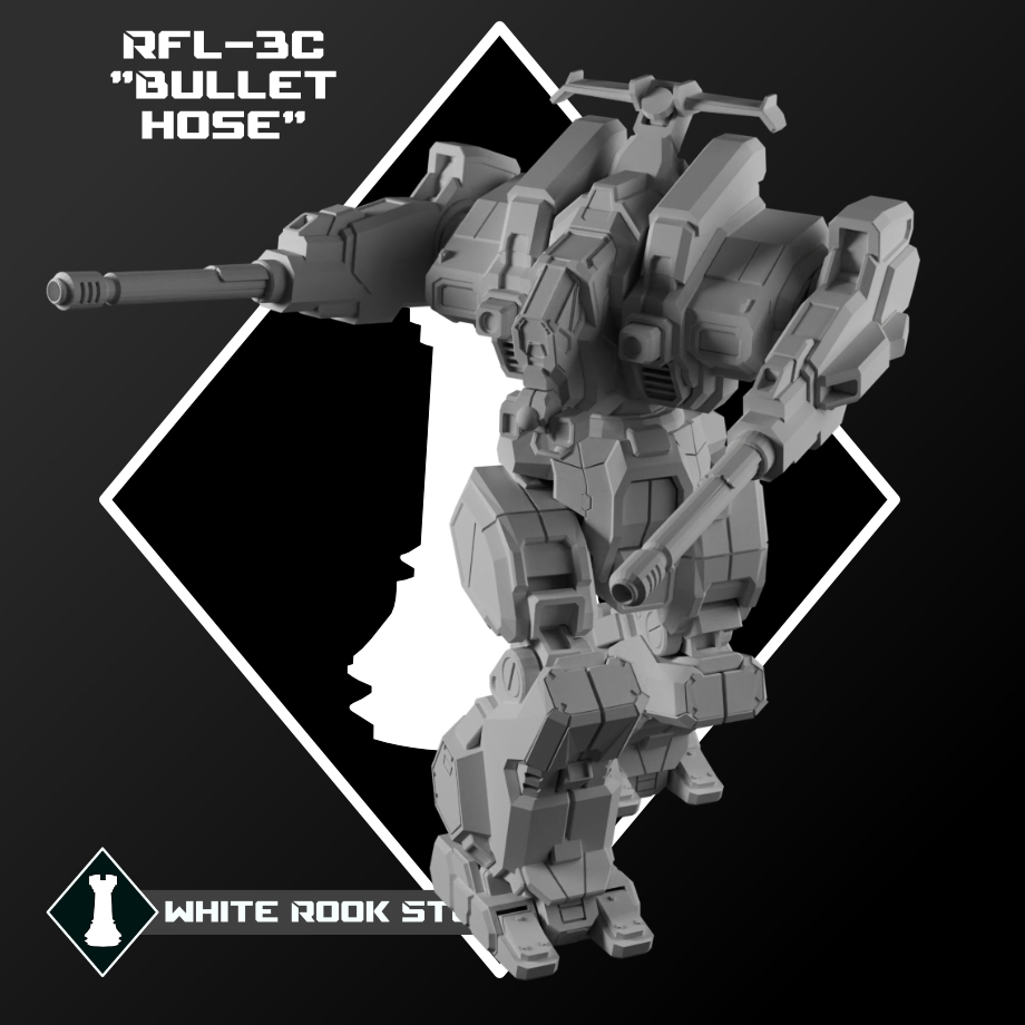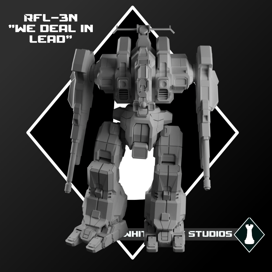 The first mech designed exclusively as a medium fire support platform, the Rifleman was plagued with problems from the outset. A glass cannon with paper thin armor it is not suited to front line duty, but its Large Lasers, AC5 autocannons, and it’s advanced targeting system make it an excellent mech to provide anti aircraft support or long range sniping.